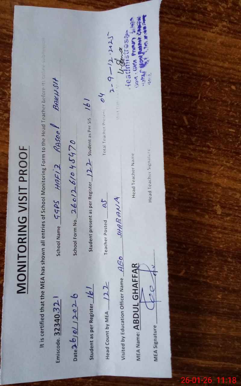 | EMIS Code: 32340321 | Name of School: GGPS HAFIZ RASOOL BAKHSH | |||