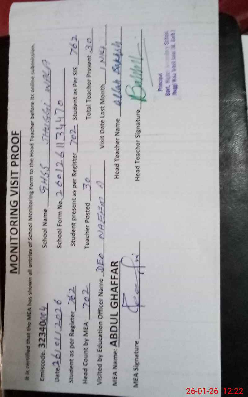 | Attendance Register | Head Teacher | MEA with School | Visit Proof |