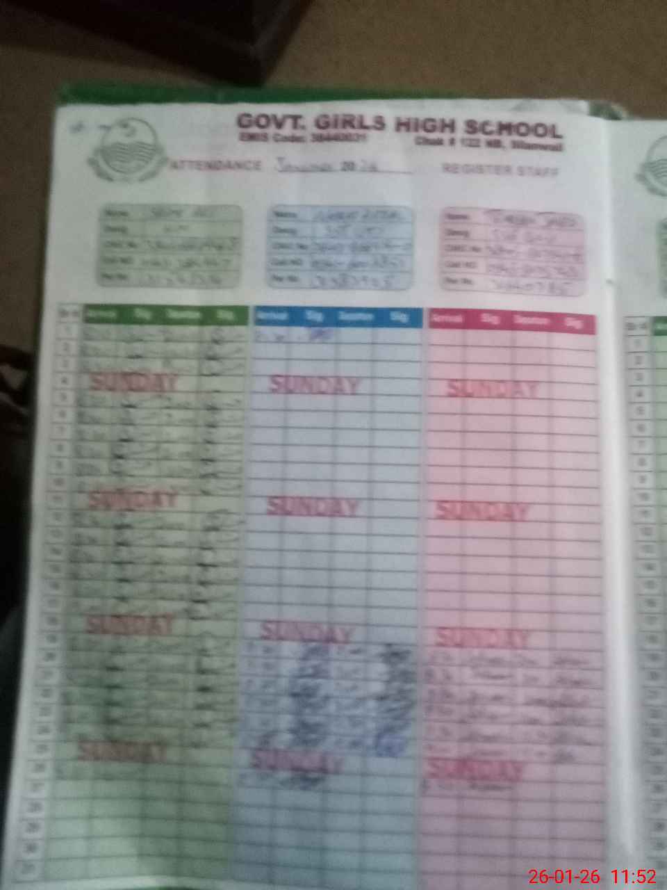 | CNIC | Full Name | Designation | R/C | Absence During Last Calender Month |