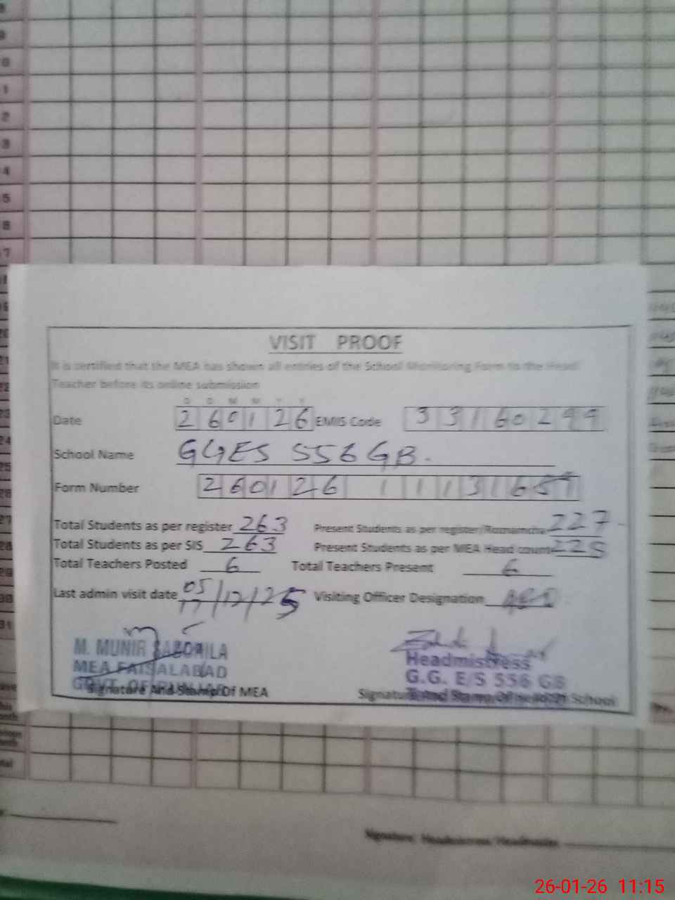 | EMIS Code: 33160299 | Name of School: GGES CHAK 556 GB MAMUNKANJAN | |||