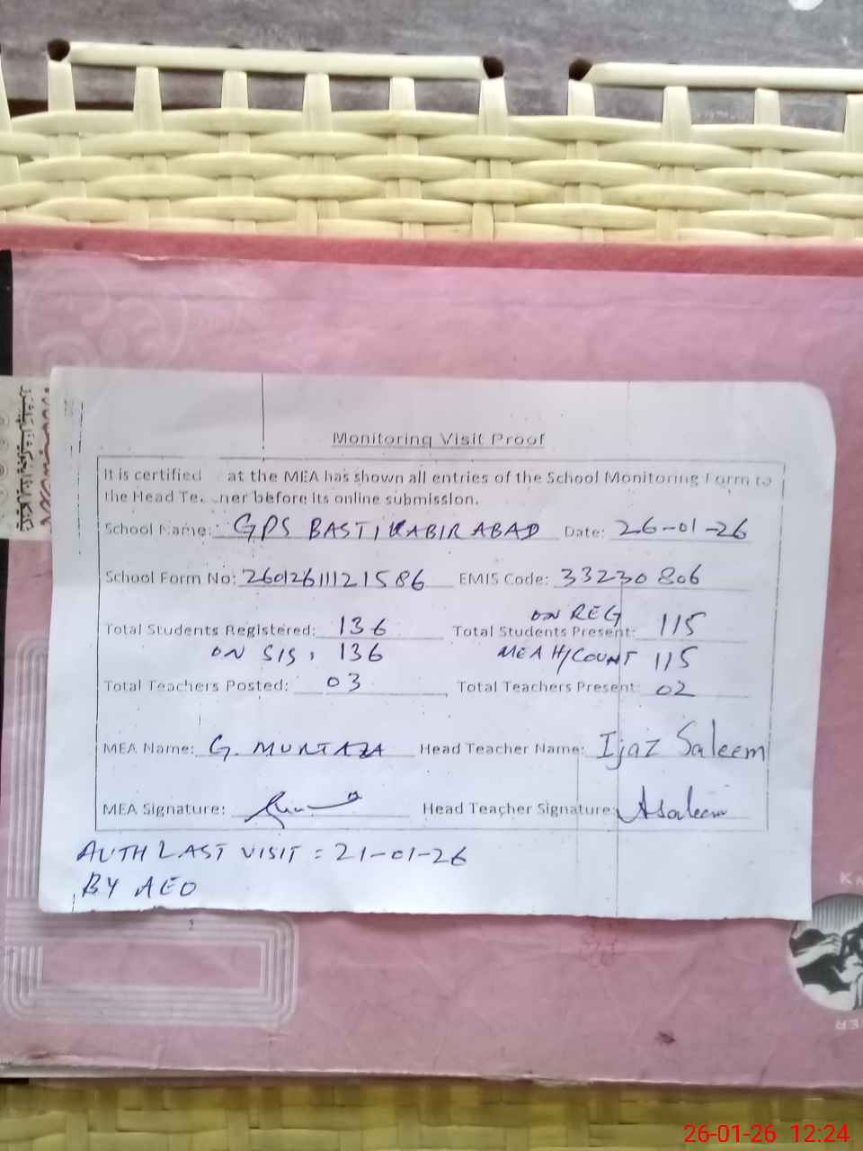 | EMIS Code: 33230806 | Name of School: GPS BASTI KABIR ABAD | |||