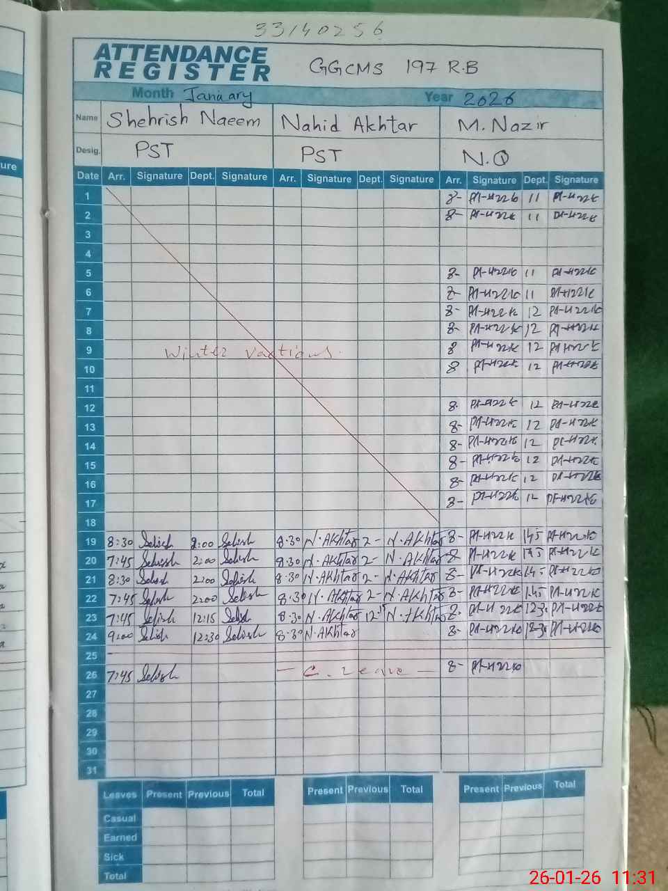 | 33**** | Na**** Ak**** | PST Arts | Regular | 2 | 0 | 0 | 0 | 0 | 0 | 0 | 0 | 2 | Casual |