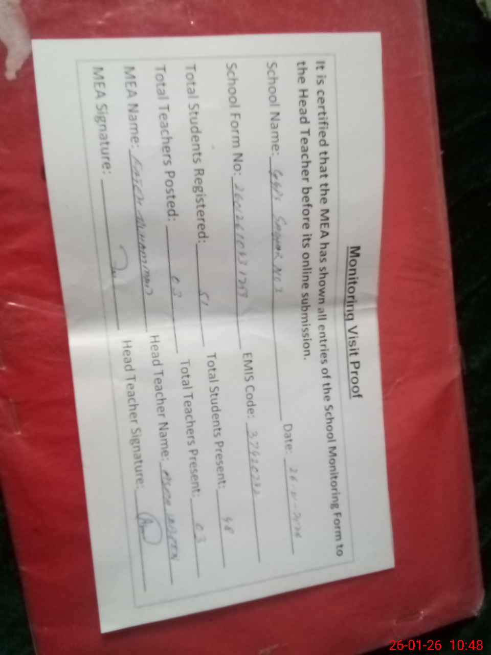 | Certified that this School was Inspected by the Undersigned MEA/DMO Today and the Information Stated Above is as Per Record. | |||||
