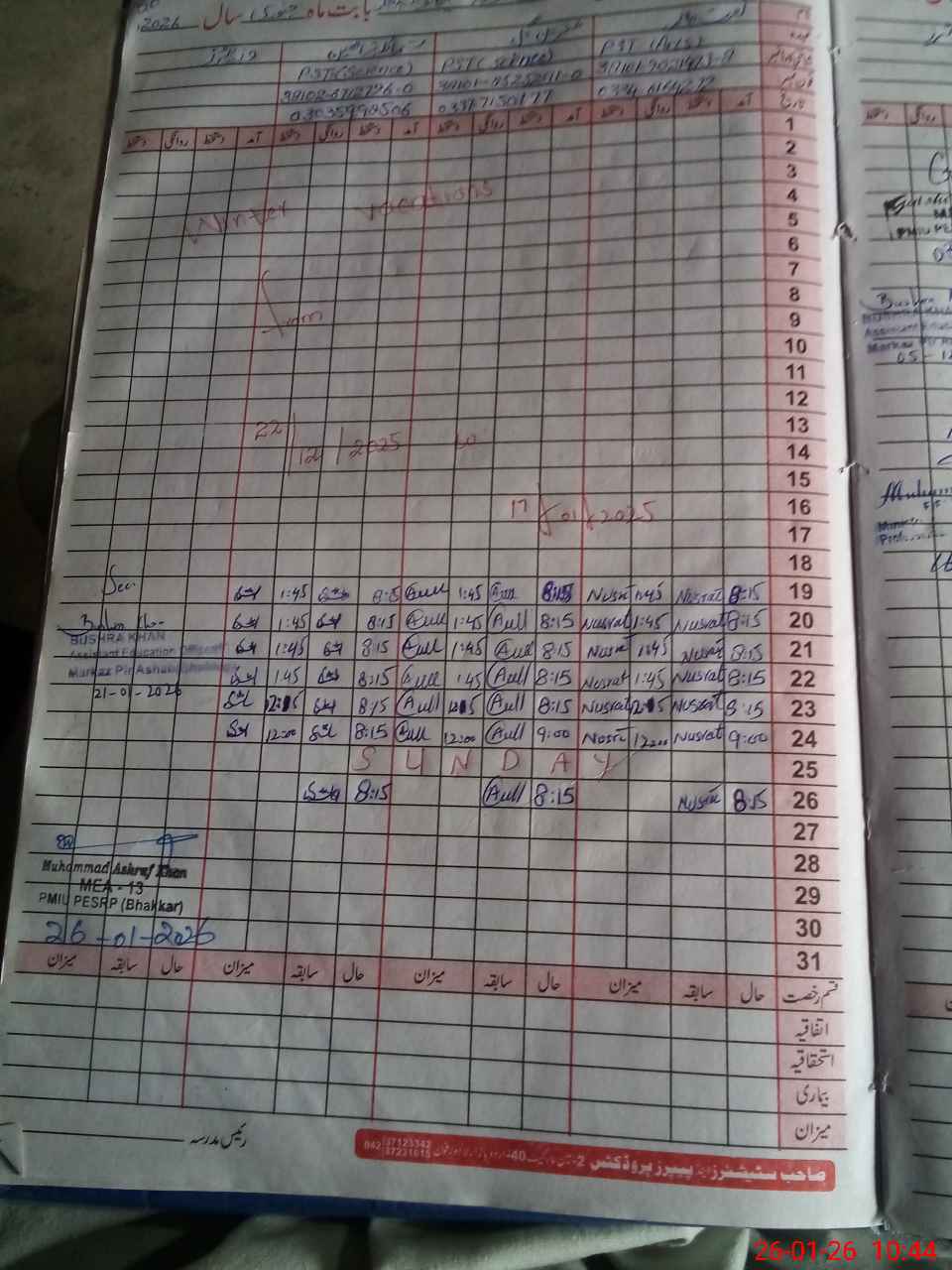 | District: BHAKKAR | Tehsil: BHAKKAR | Markaz: PIR ASHAB - FEMALE | Level: Primary | |