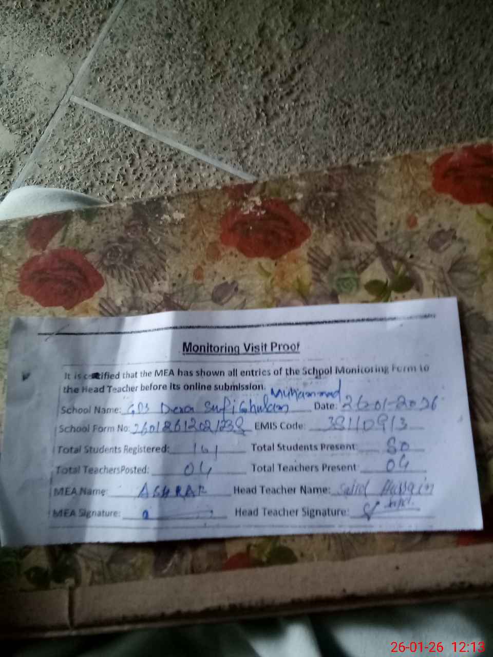 | EMIS Code: 38110913 | Name of School: GPS DERA SUFI GHULAM MUHAMMAD | |||