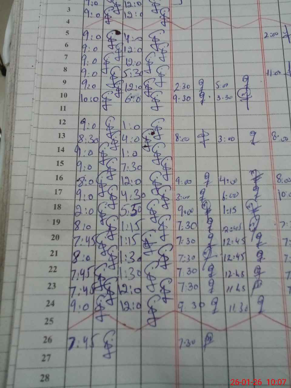 | CNIC | Full Name | Designation | R/C | Absence during last cal. month |