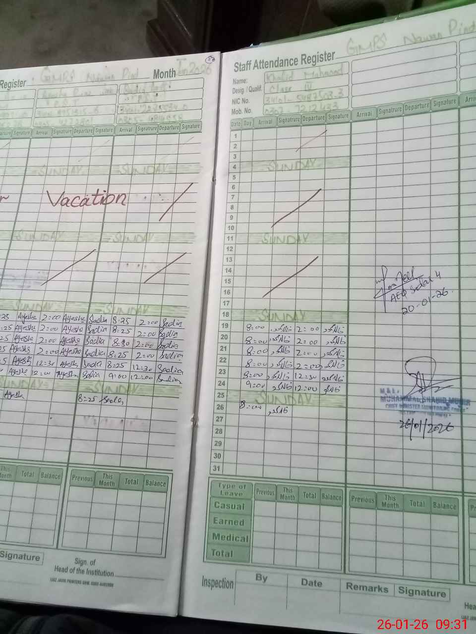 | Name: FA**** AZ**** Designation: (School Headmaster's/Headmistress's) PST Phone/Cell Number: 03**** |