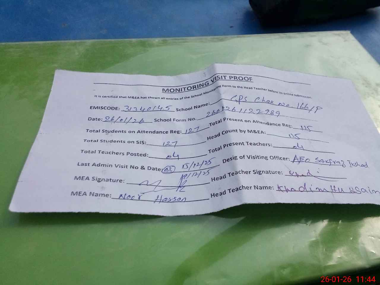 | EMIS Code: 31340145 | Name of School: GPS CHAK 166/P | |||