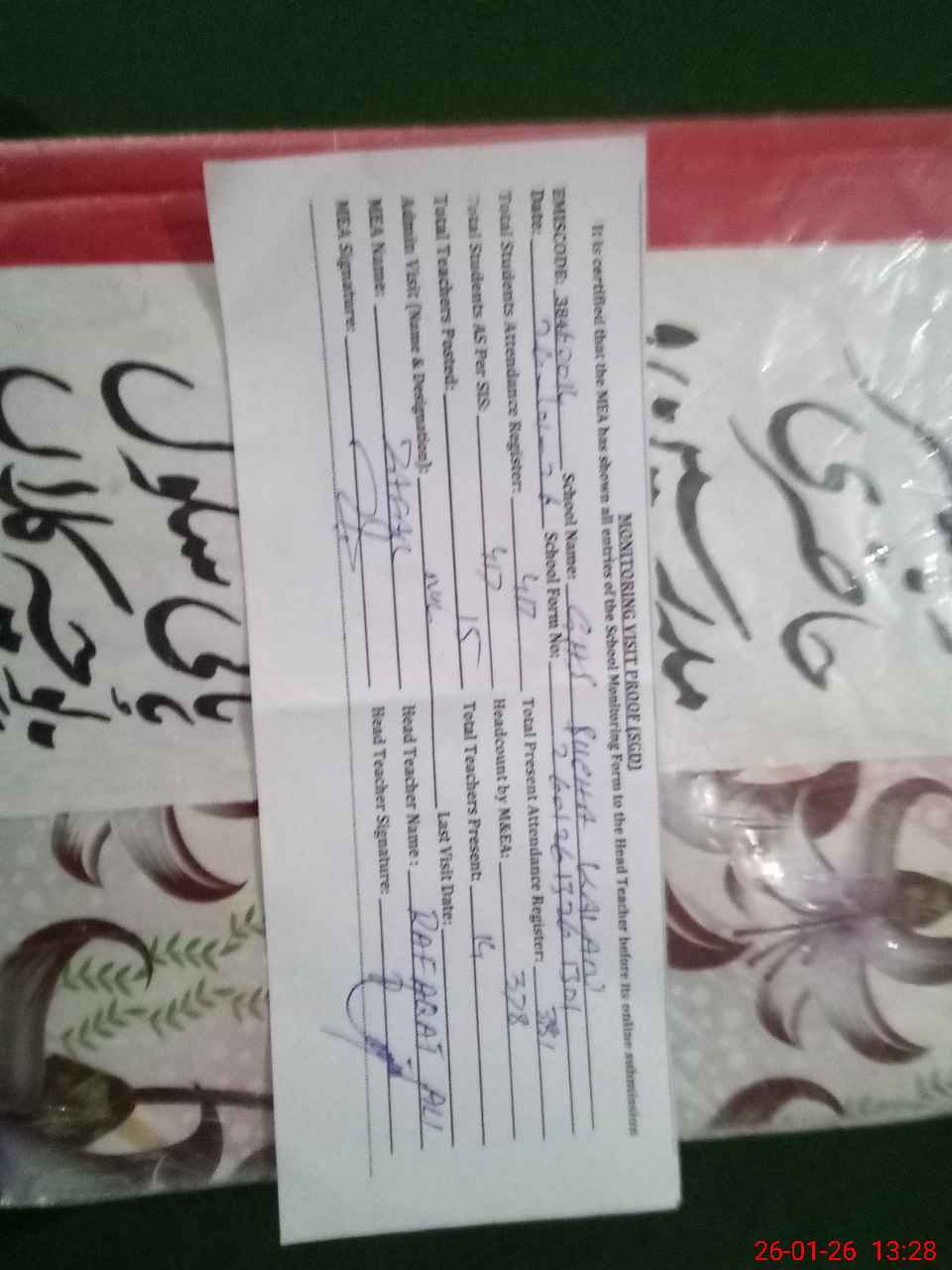 | Attendance Register | Head Teacher | MEA with School | Visit Proof |