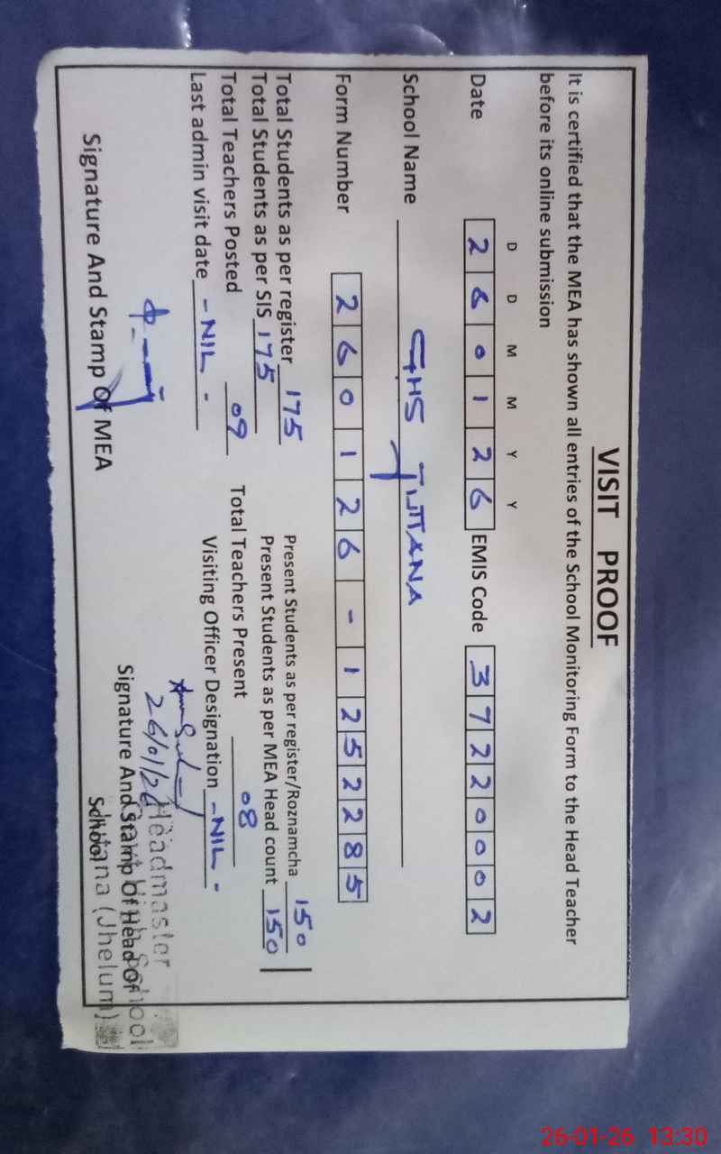 | EMIS Code: 37220002 | Name of School: GHS JUTANA | |||