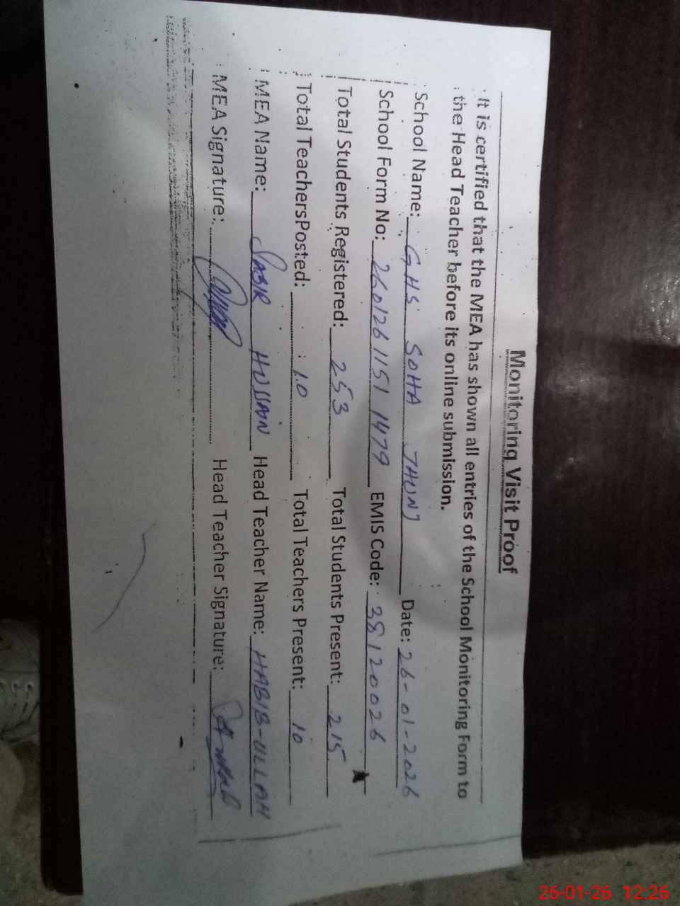 | EMIS Code: 38120026 | Name of School: GHS SOHA JHUNJ | |||