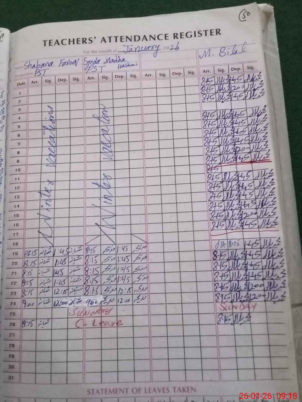 | Name: SH**** FA**** Designation: (School Headmaster's/Headmistress's) PST Phone/Cell Number: 03**** |