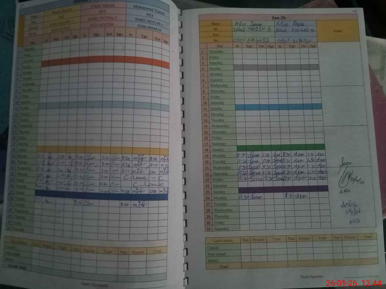 | CNIC | Full Name | Designation | R/C | Absence During Last Calender Month |