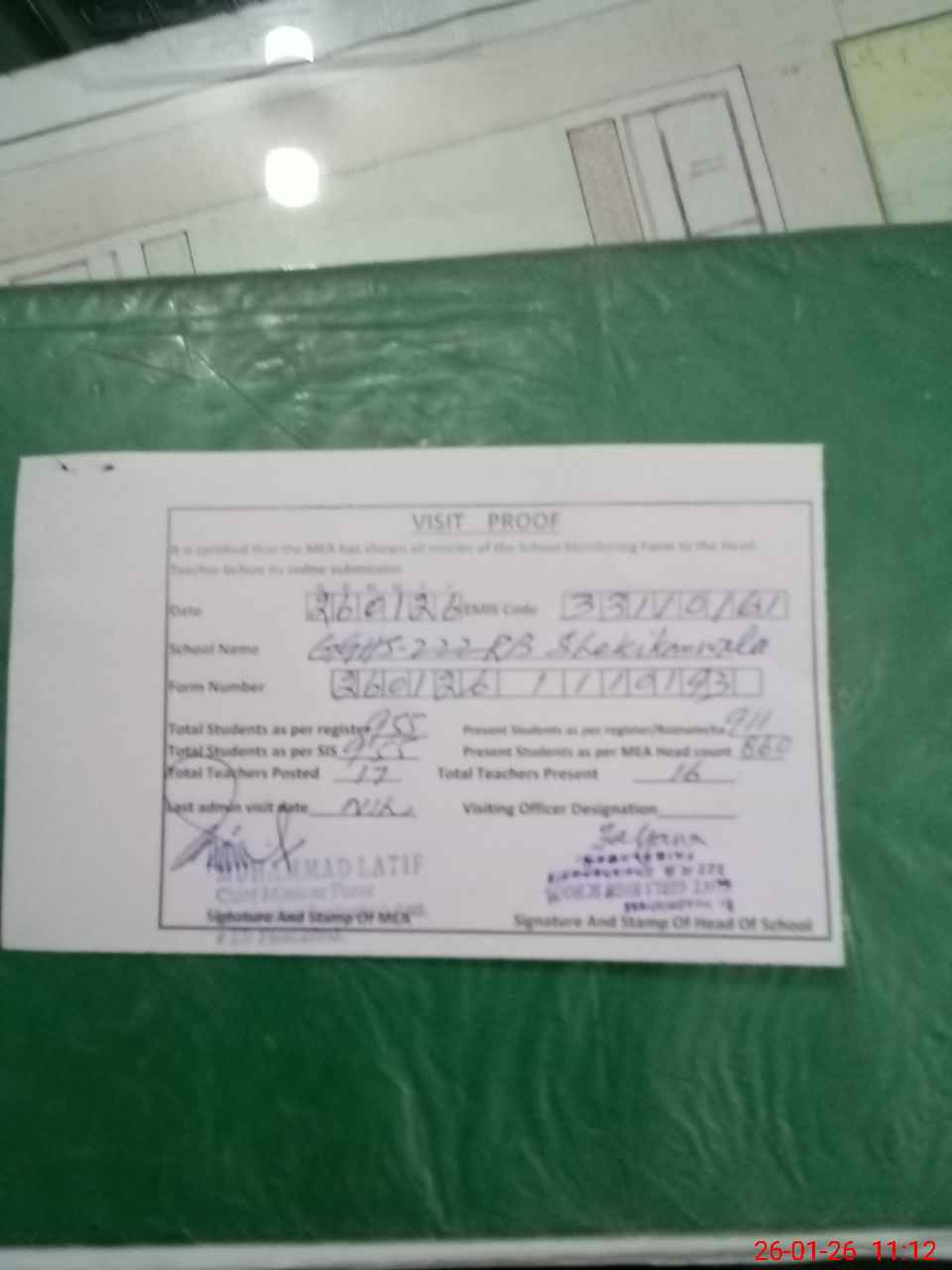 | Certified that this School was Inspected by the Undersigned MEA/DMO Today and the Information Stated Above is as Per Record. | |||||