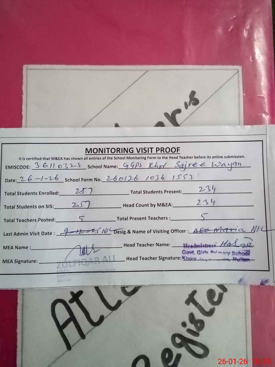 | EMIS Code: 36110323 | Name of School: GGPS KHOR SAJREE WAYAN | |||