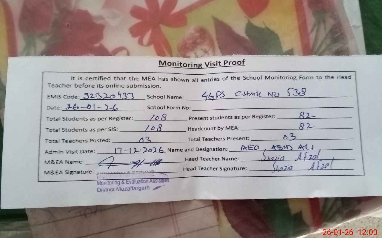 | EMIS Code: 32320433 | Name of School: GGPS CHAK NO. 538 TDA | |||
