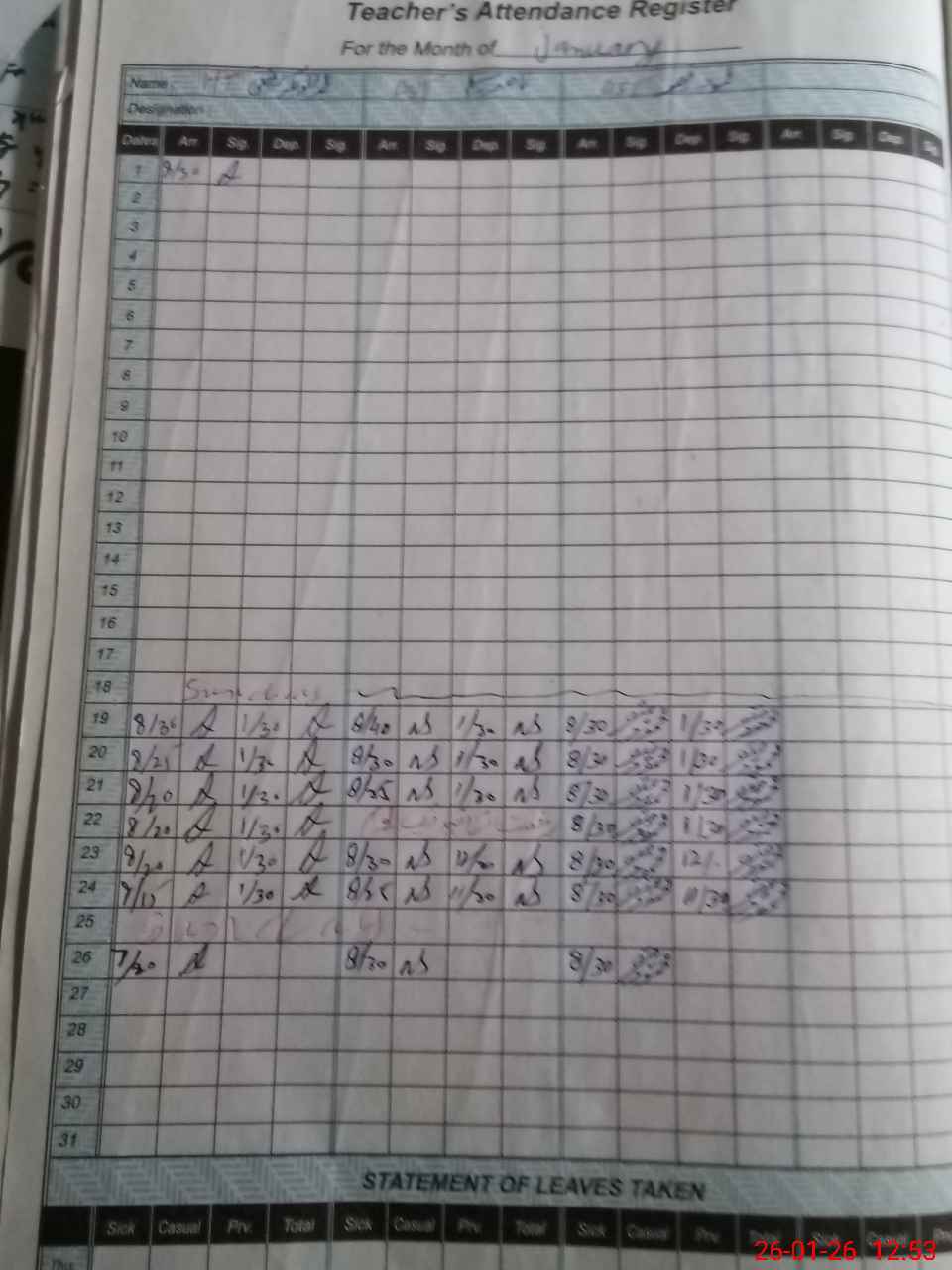 | 36**** | Hs**** | CHAUKIDAR | 0 | 30 | 0 | 0 | 0 | 0 | 0 | 0 | 0 | Absent (Un-Authorized) | |