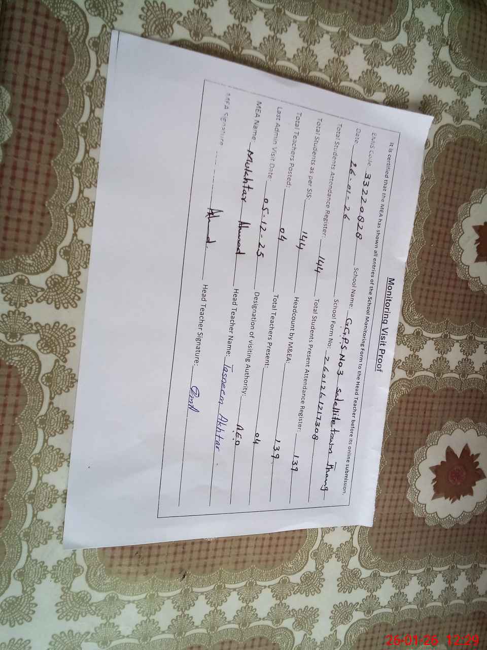| EMIS Code: 33220828 | Name of School: GGPS NO. 3 SATELLITE TOWN JHANG | |||