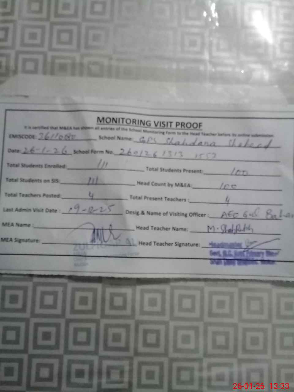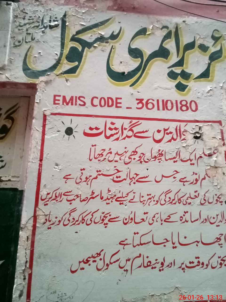 | EMIS Code: 36110180 | Name of School: GPS MC SHAHDANA SHAHEED INSIDE DEHLI GATE MULTAN | |||