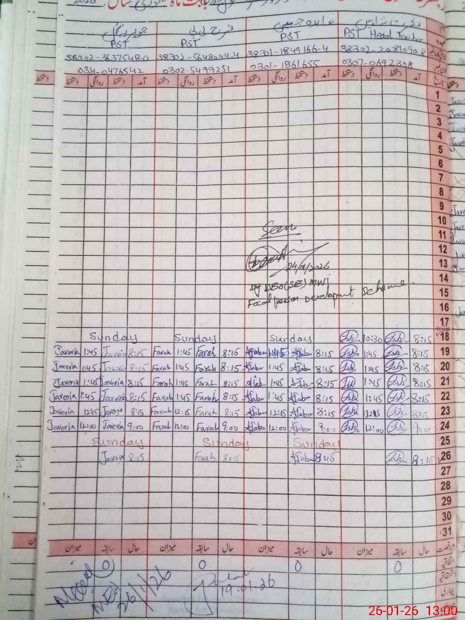 | CNIC | Full Name | Designation | R/C | Absence During Last Calender Month |