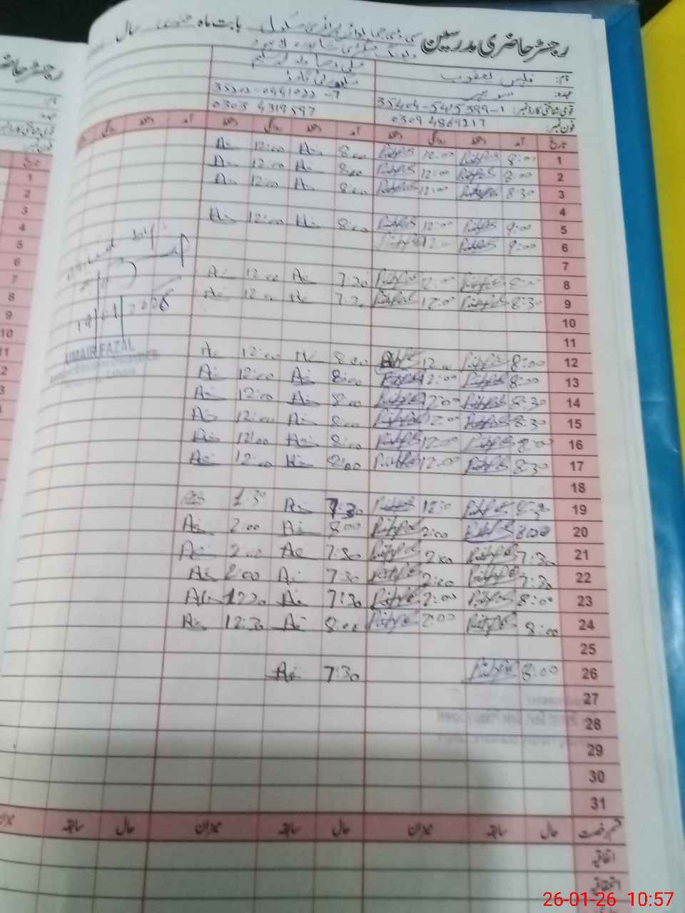 | CNIC | Full Name | Designation | R/C | Absence During Last Calender Month |
