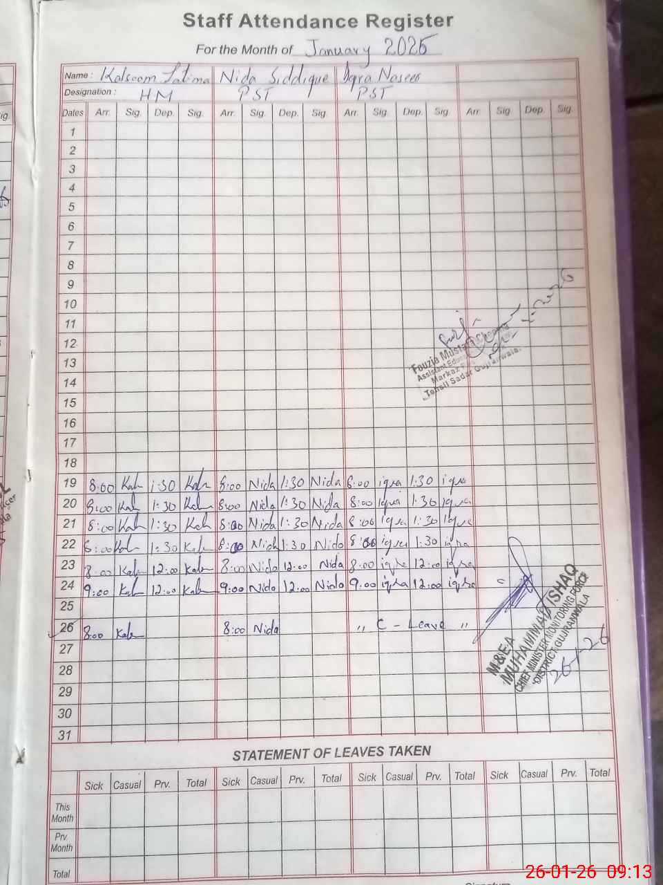 | 34**** | Iq**** Na**** | PST Science/Maths | Regular | 1 | 0 | 0 | 0 | 0 | 0 | 0 | 0 | 1 | Casual |