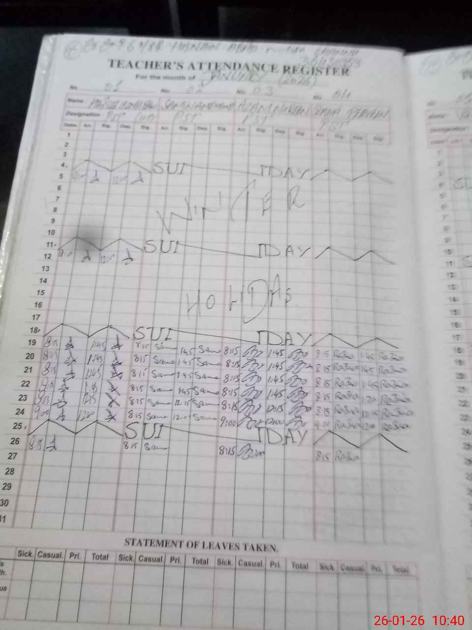 | Leave | Duty | Absent | Maternity | Medical | Ex- Pak |
