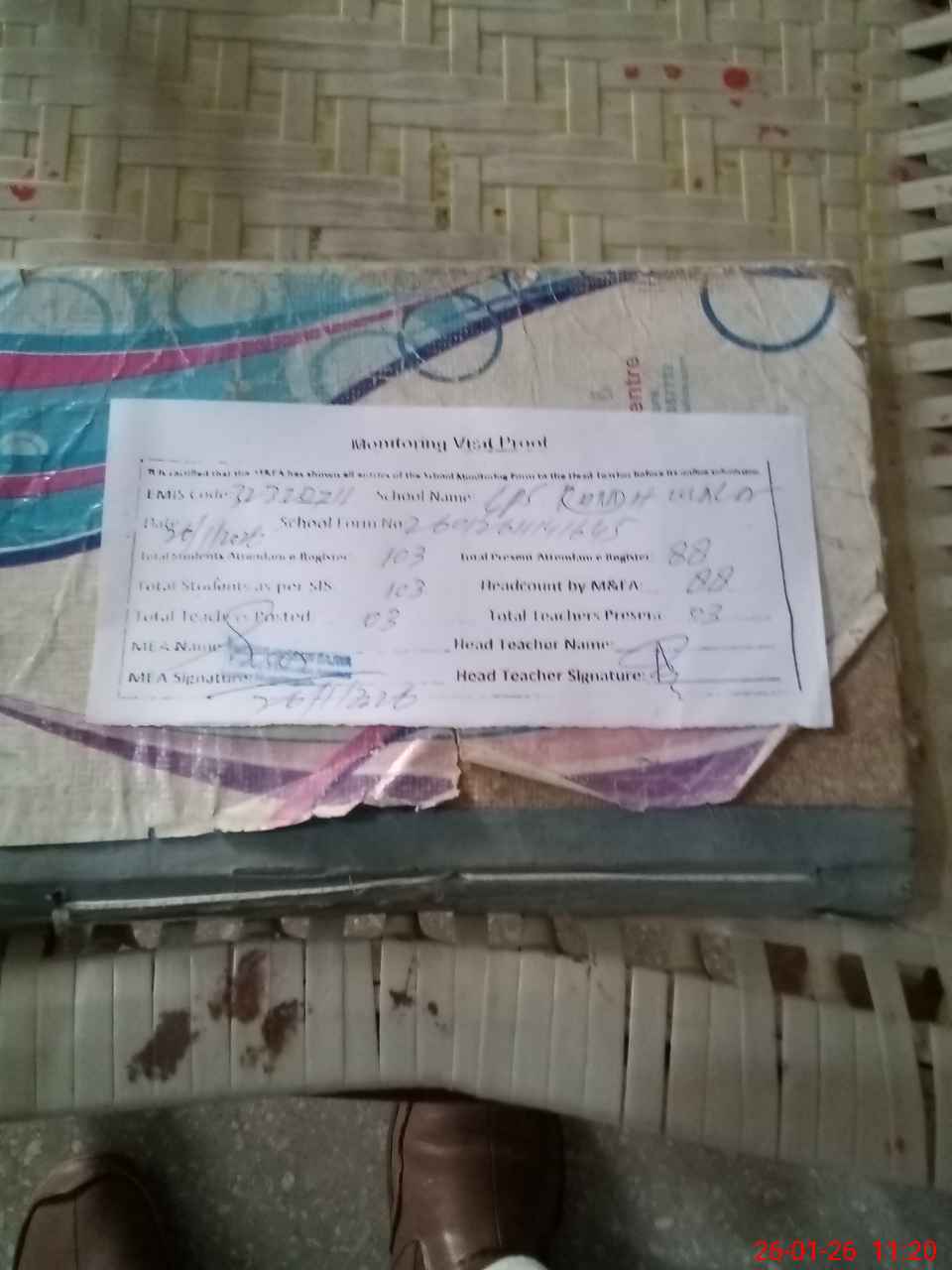 | Attendance Register | Head Teacher | MEA with School | Visit Proof |
