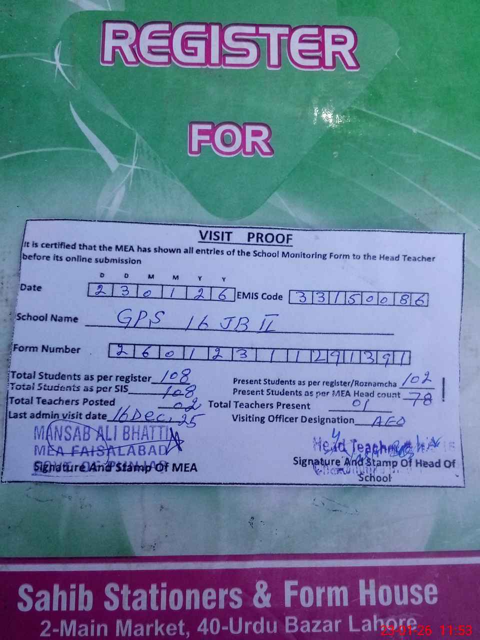 | EMIS Code: 33150086 | Name of School: GPS 16 JB II | |||