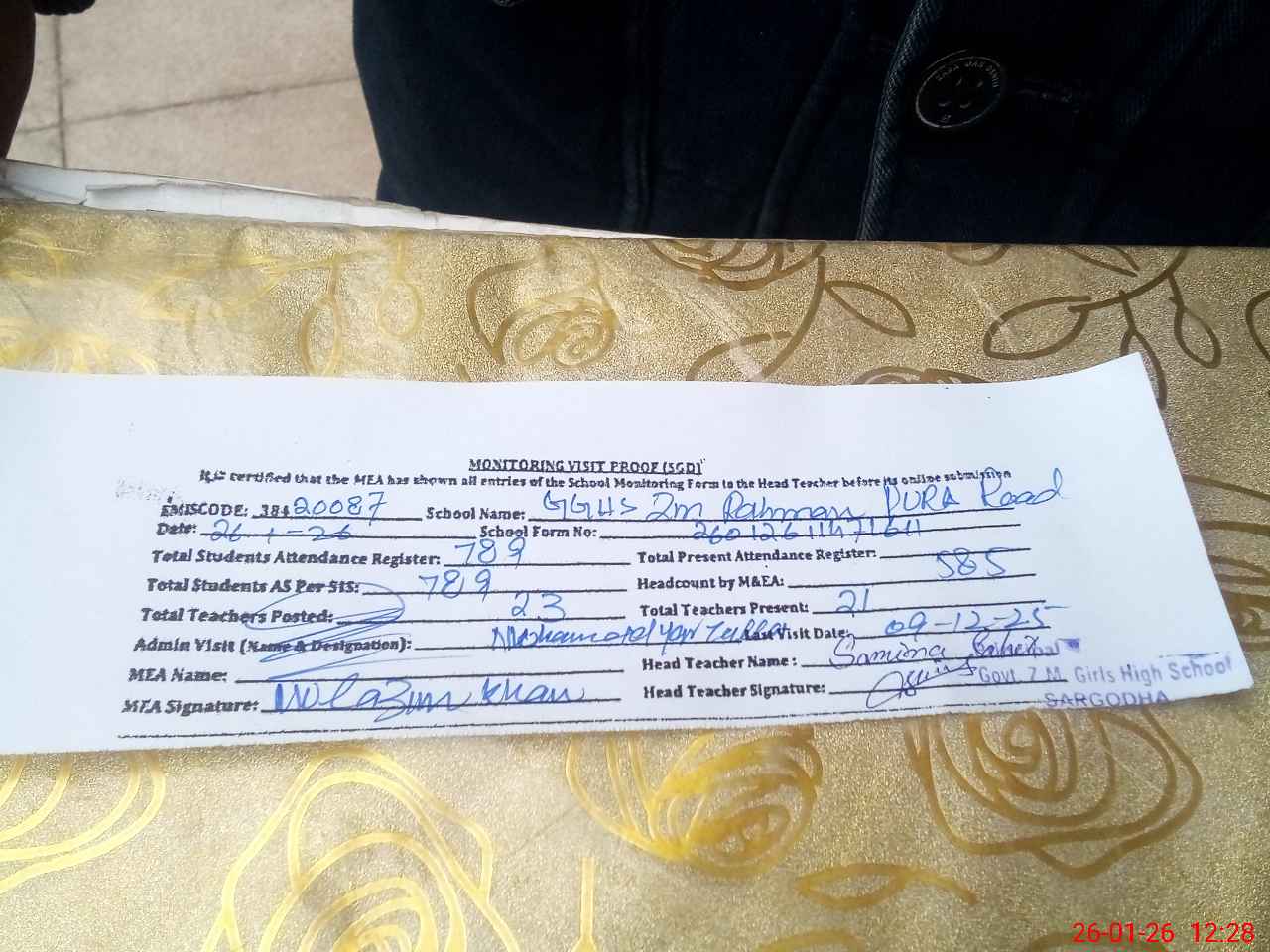 | EMIS Code: 38420087 | Name of School: GGHS ZM REHMAN PURA ROAD SGD | |||