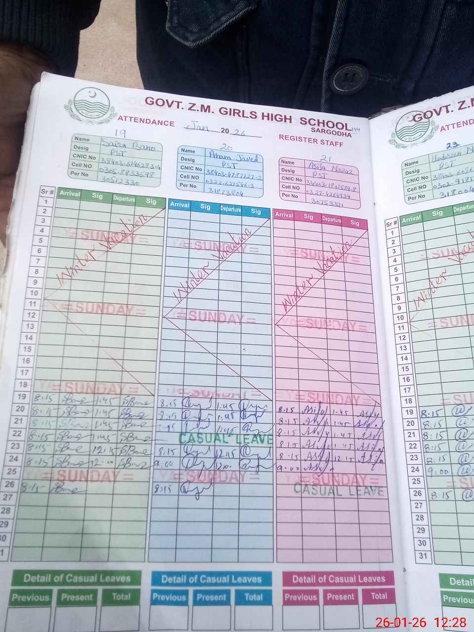 | CNIC | Full Name | Designation | R/C | Absence During Last Calender Month |