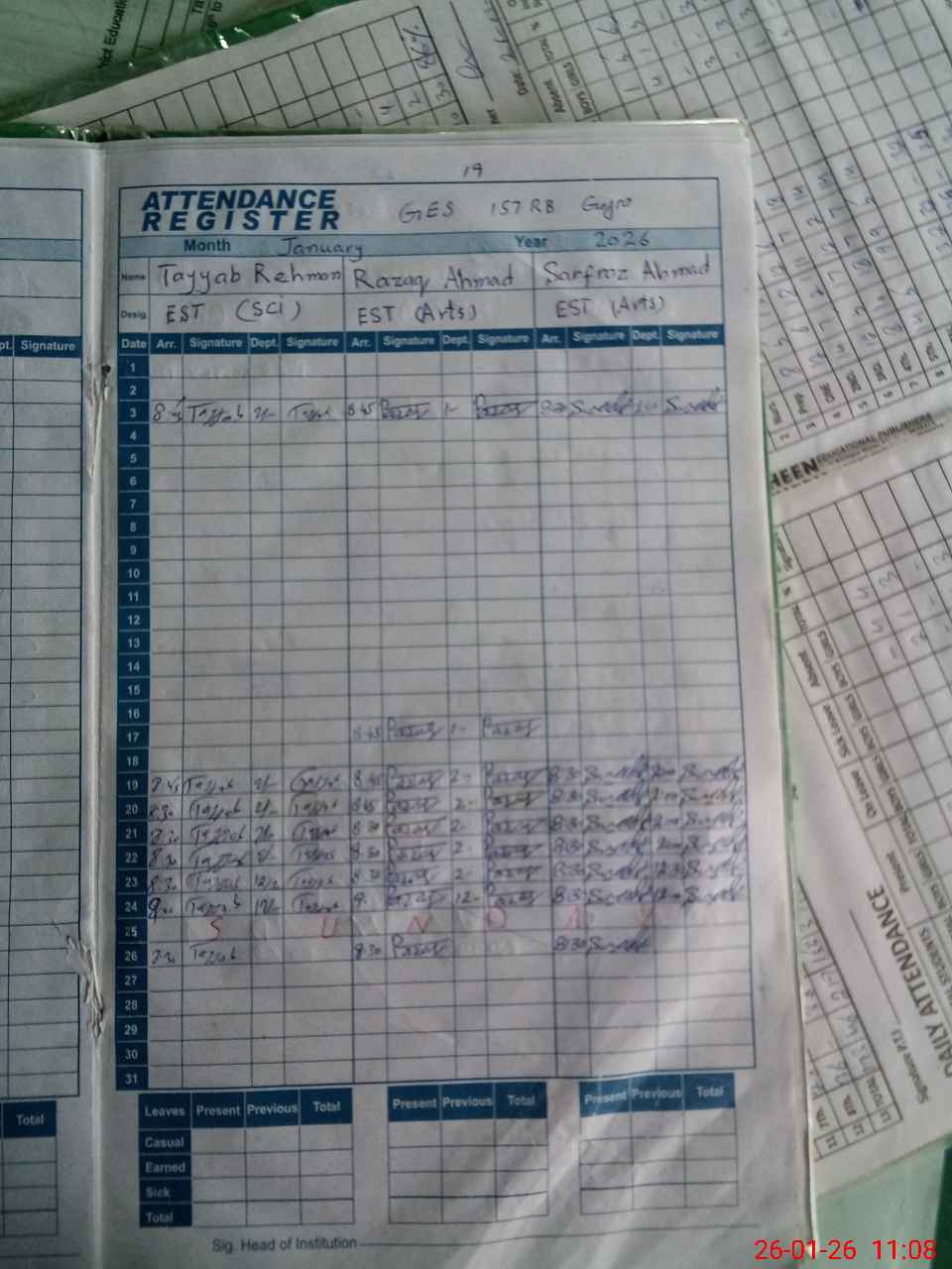 | CNIC | Full Name | Designation | R/C | Absence During Last Calender Month |