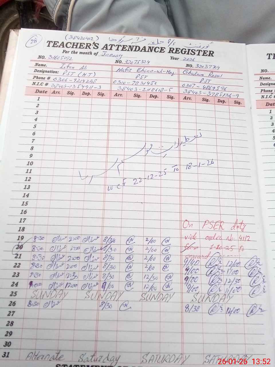 | Name: IR**** AL**** Designation: (School Headmaster's/Headmistress's) PST Phone/Cell Number: 03**** |
