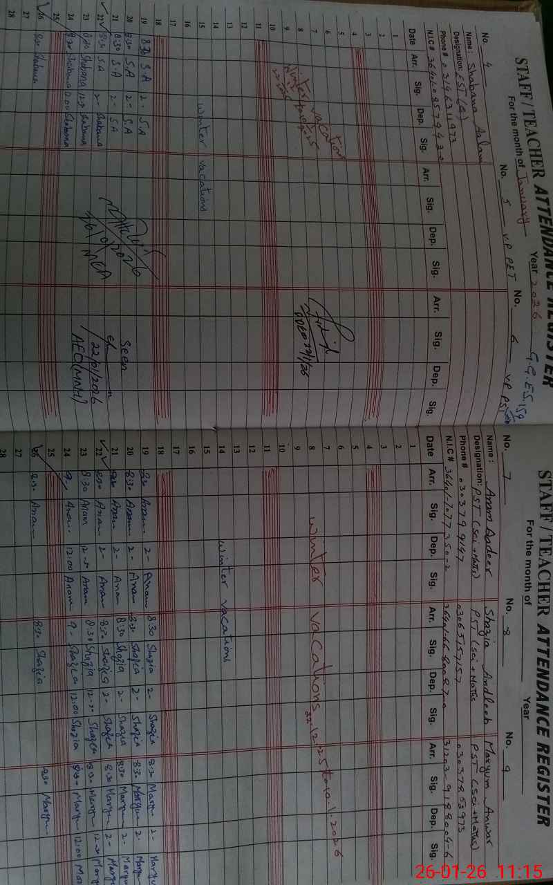 | Name: SA**** NA**** Designation: (School Headmaster's/Headmistress's) SST(GENERAL) Phone/Cell Number: 03**** |
