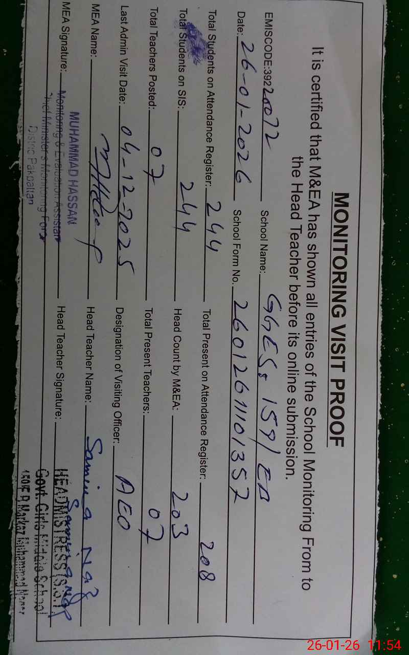 | Certified that this School was Inspected by the Undersigned MEA/DMO Today and the Information Stated Above is as Per Record. | |||||