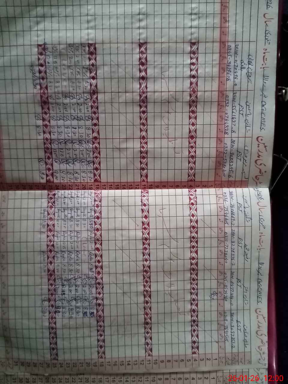 | CNIC | Full Name | Designation | R/C | Absence during last cal. month |