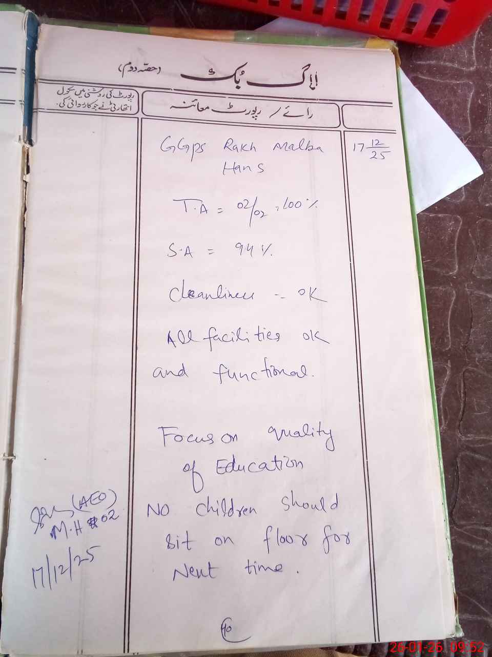| Certified that this School was Inspected by the Undersigned MEA/DMO Today and the Information Stated Above is as Per Record. | |||||