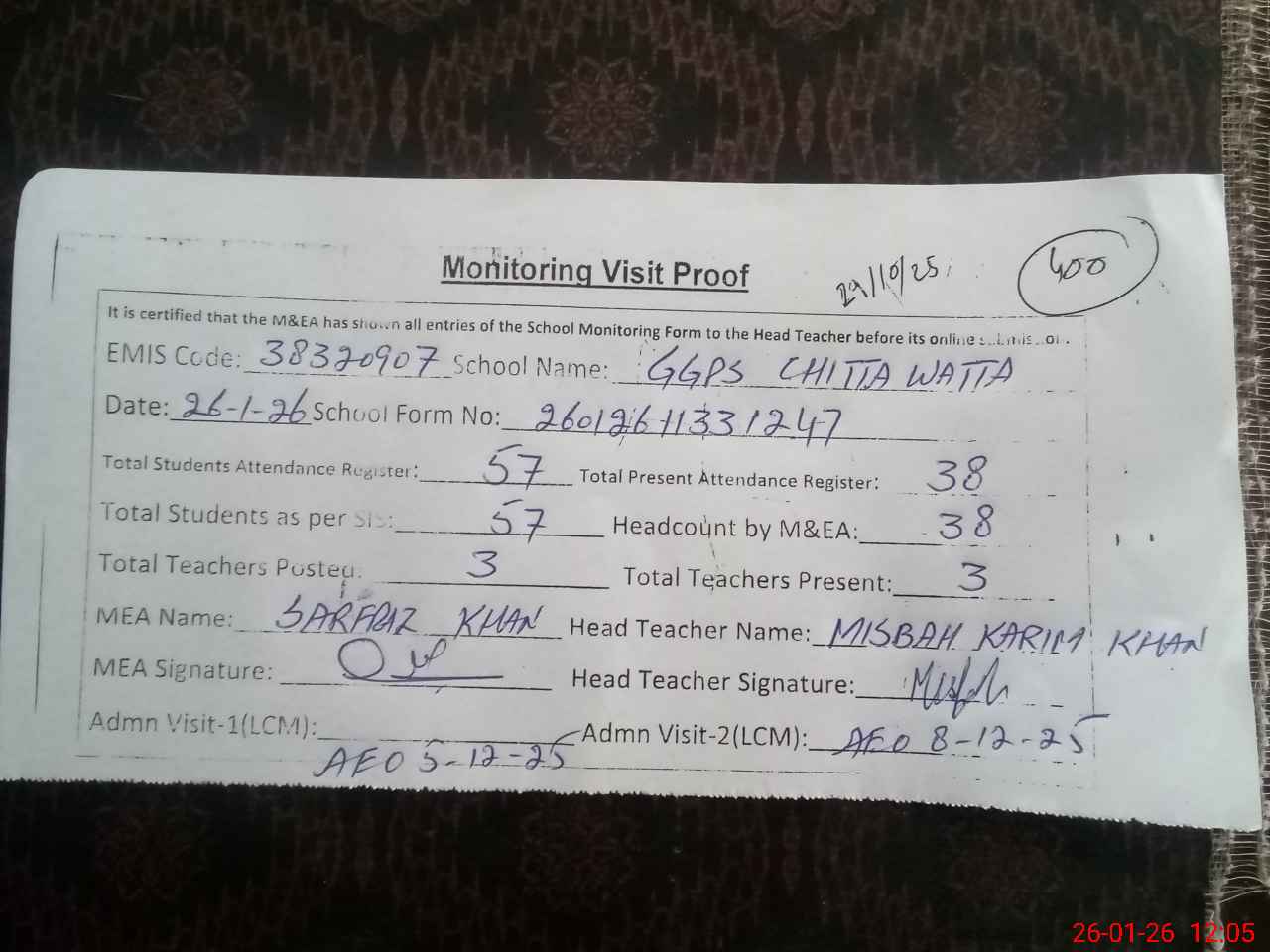 | EMIS Code: 38320907 | Name of School: GGPS CHITTA WATTA | |||