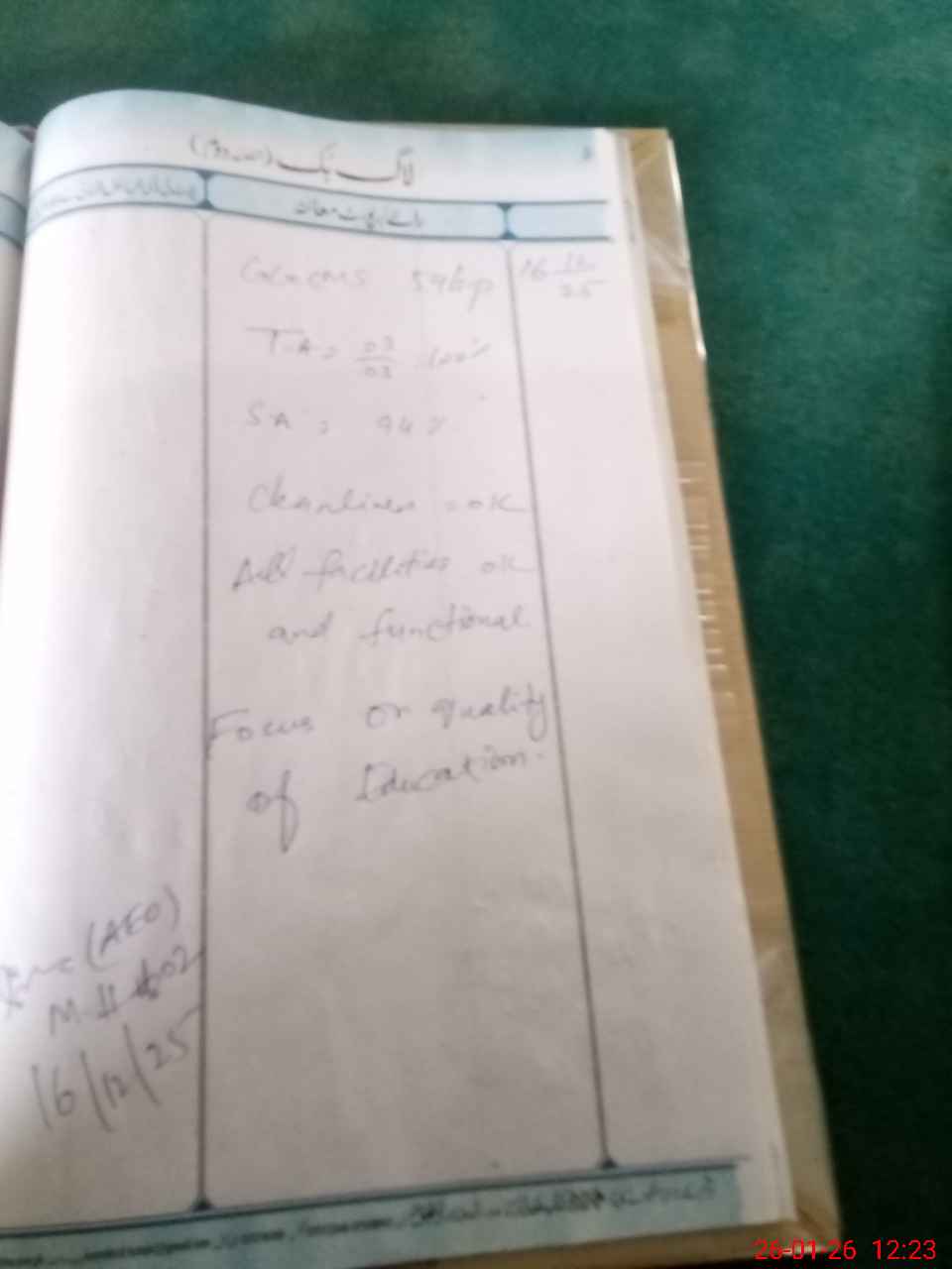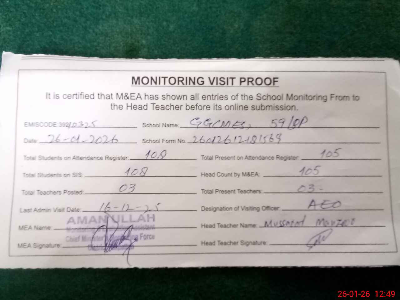 | Attendance Register | Head Teacher | MEA with School | Visit Proof |