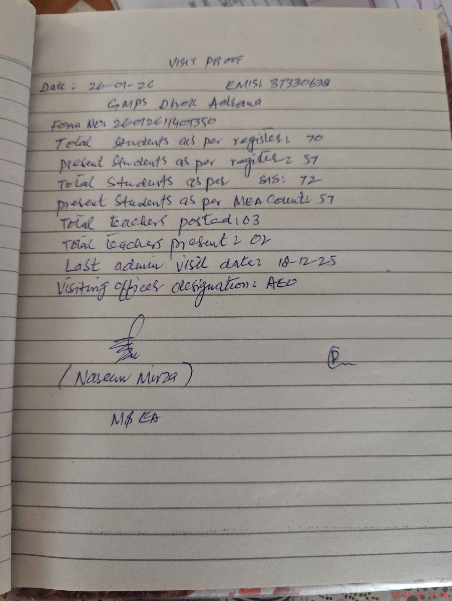 | Monitoring Date: 26-01-2026 | Start Time: 26-01-2026 11:00 AM | End Time: 26-01-2026 11:45 AM | Name of MEA: Na**** Sh**** | |