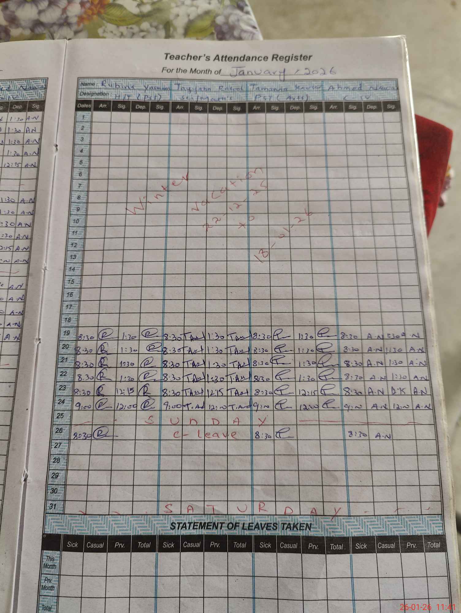 | 37**** | Ta**** Ra**** | PST Science/Maths | Regular | 0 | 0 | 0 | 0 | 0 | 0 | 0 | 0 | 0 | Casual |