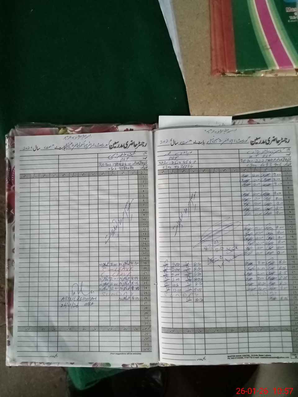 | CNIC | Full Name | Designation | R/C | Absence During Last Calender Month |