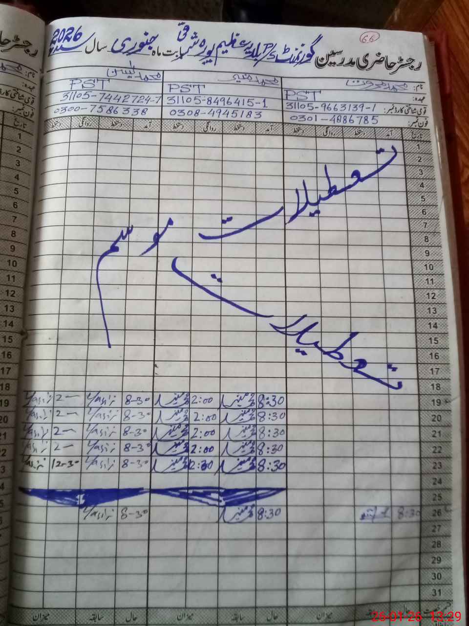 | Name: MU**** HU**** Designation: (School Headmaster's/Headmistress's) PST Phone/Cell Number: 03**** |