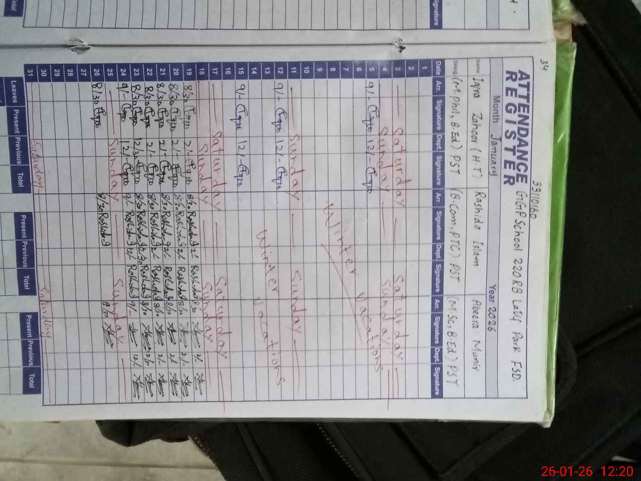 | Name: IQ**** ZA**** Designation: (School Headmaster's/Headmistress's) PST Phone/Cell Number: 03**** |