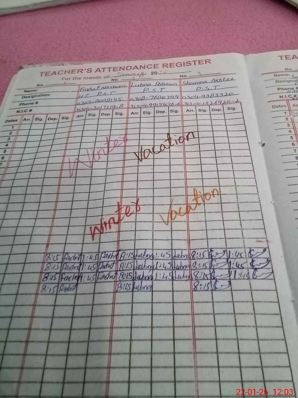 | Name: FA**** NA**** Designation: (School Headmaster's/Headmistress's) PST/PTC/JV Phone/Cell Number: 03**** |