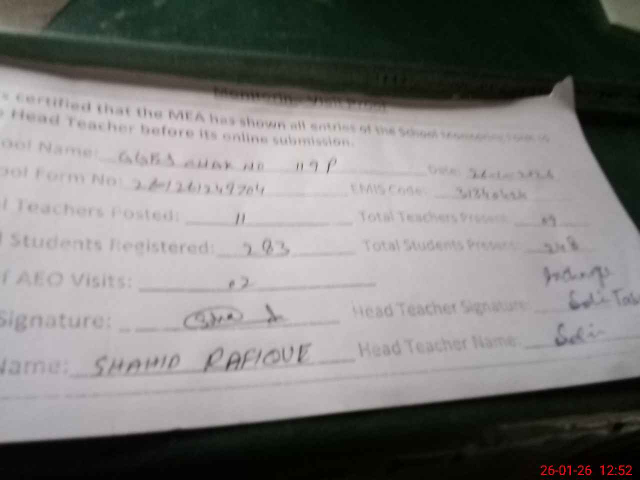 | Certified that this School was Inspected by the Undersigned MEA/DMO Today and the Information Stated Above is as Per Record. | |||||
