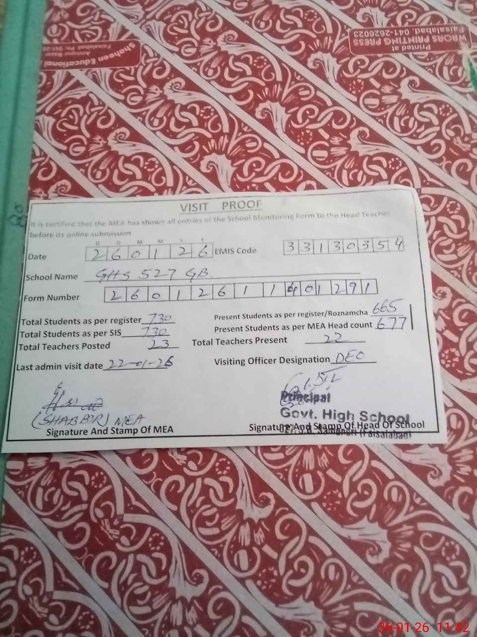 | EMIS Code: 33130354 | Name of School: GHS CHAK 527 GB SAMUNDRI FSD | |||