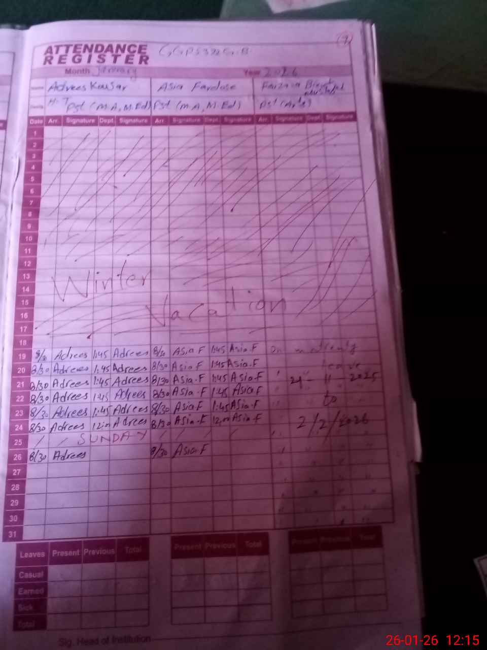 | Leave | Duty | Absent | Maternity | Medical | Ex- Pak |
