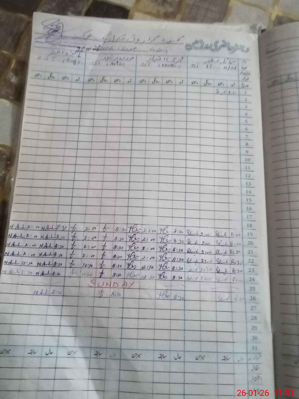 | CNIC | Full Name | Designation | R/C | Absence During Last Calender Month |