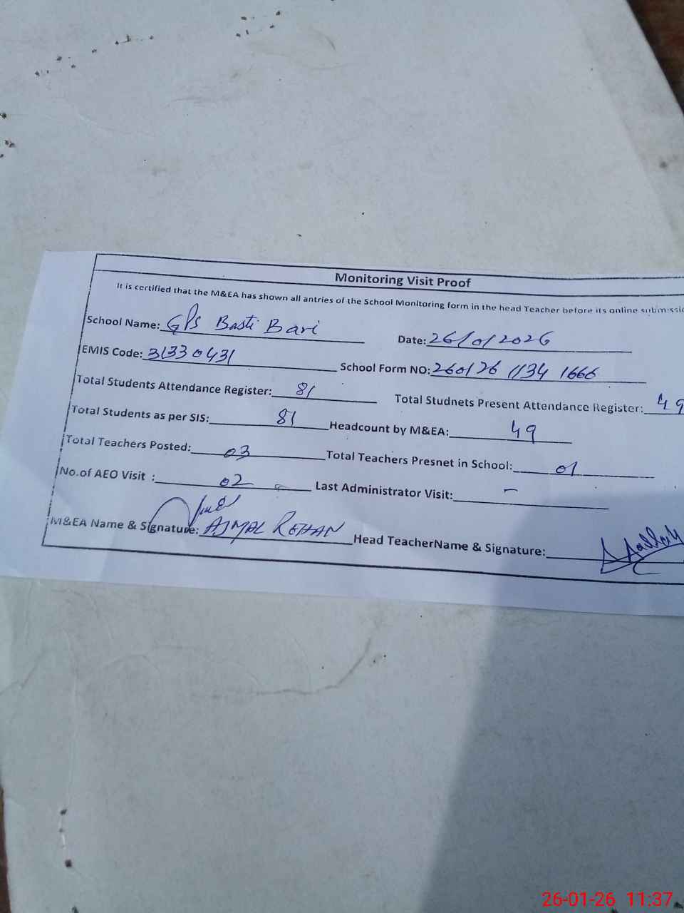 | EMIS Code: 31330431 | Name of School: GPS BASTI BARI | |||
